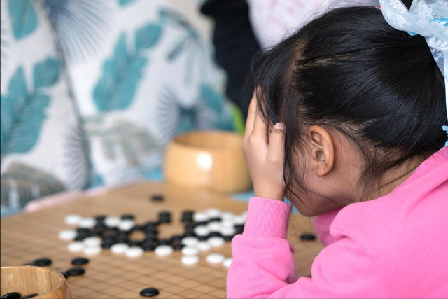 有一次陪儿子观摩社区举办的围棋比赛,有个小女孩特别引人注意。